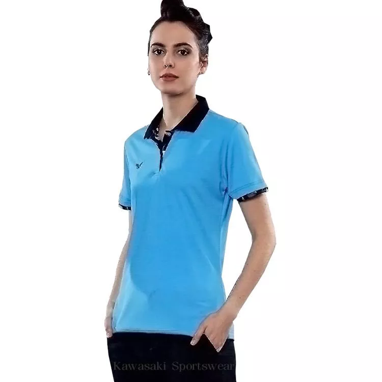 【日本 Kawasaki】女版運動休閒吸濕排汗短POLO衫-海藍(#KW2261A2)